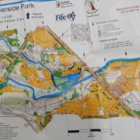 Catriona Phin - 1st woman - and Clive Masson - 2nd man- on the long green course were the best of the 8 strong Tayside OC turnout at today's Riverside Park open event staged by the Kingdom of Fife club in Glenrothes.
